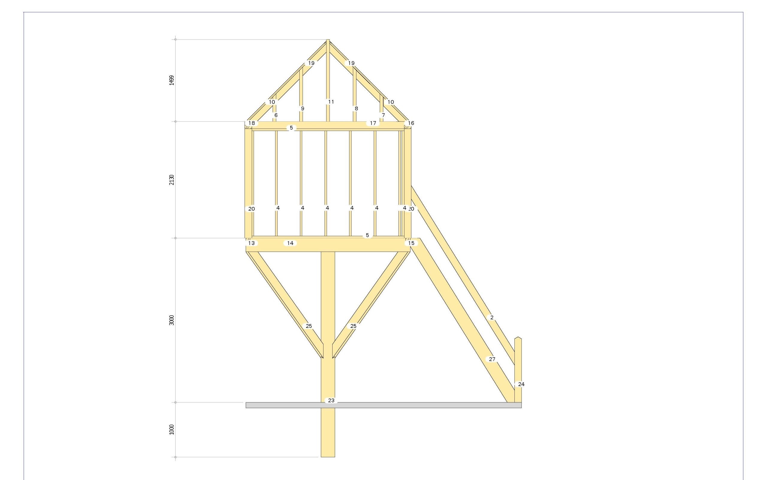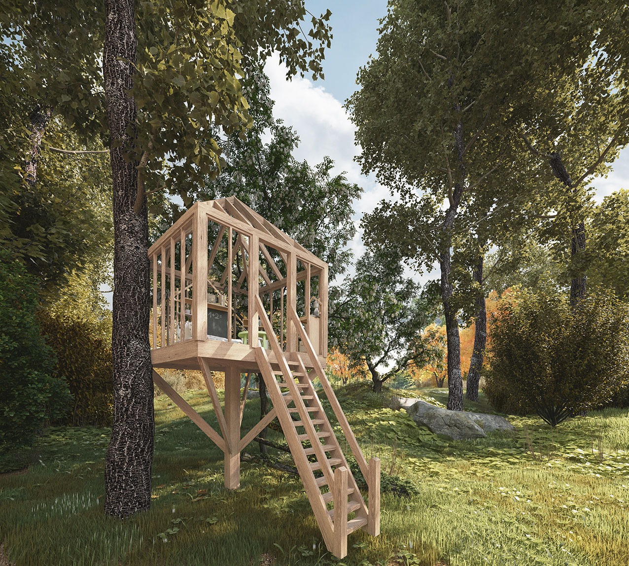 Niets spreekt zo tot de verbeelding als boomhutten. Kinderen van alle leeftijden worden op slag verliefd op deze boomhut, en hun ouders vinden het geweldig hoe hij in de tuin past. Deze boomhut heeft niet eens een boom nodig. Hij staat op een paal op 3 m hoogte en is toegankelijk via een stevige trap met leuning. Deze stevige houten boomhut met zadeldak is een magische speelhut voor kinderen en een blikvanger in elke tuin