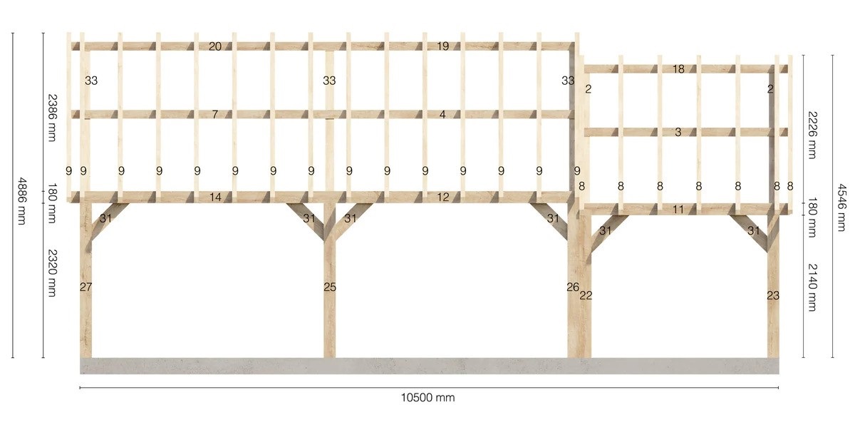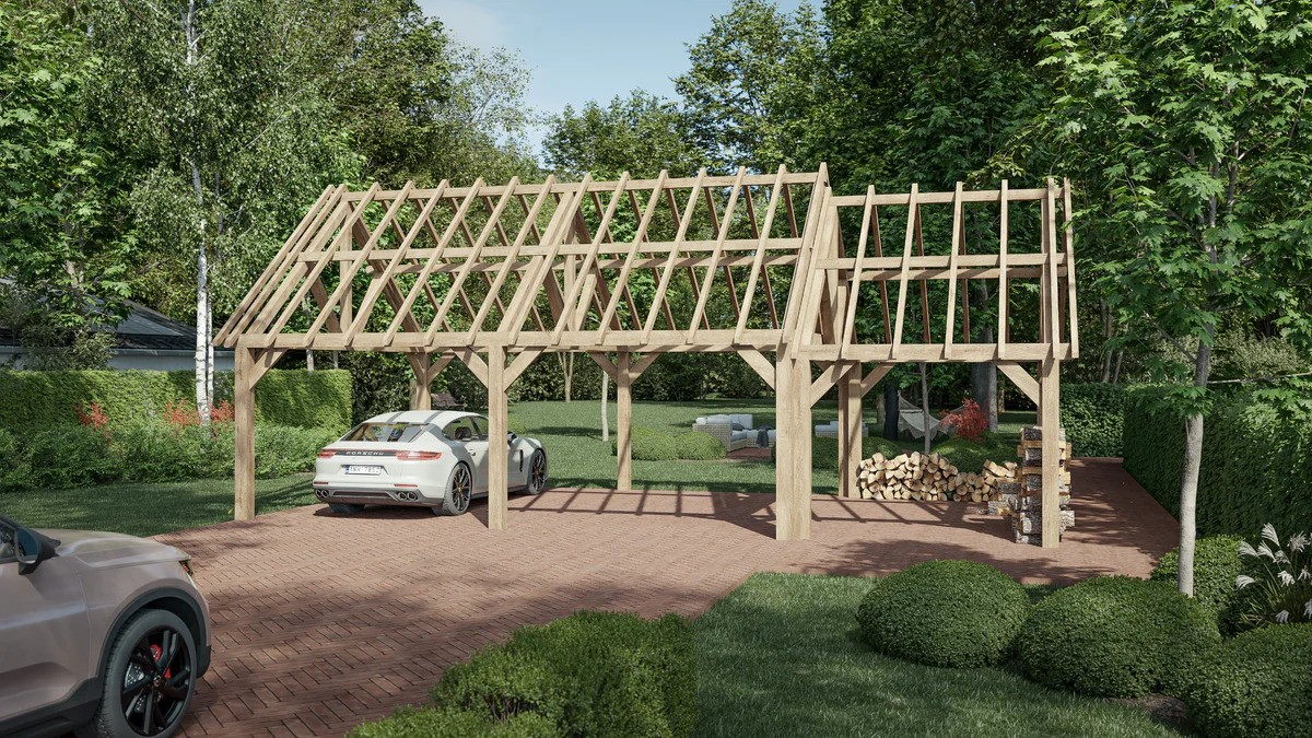 Deze klassieke garage is een massief houten zelfbouwpakket van 7x4m tot 11,5×5,5m en onderscheidt zich door zijn dubbele zadeldak. Ideaal voor een kantoor aan huis, man cave, carport, garage, fitnessruimte, terras of opslag. Deze traditionele houtbouw met oversized balken van 18 x 18 cm en authentieke houtverbindingen verzekeren robuustheid, met een landelijke en duurzame uitstraling, een prachtige aanvulling voor elke buitenruimte.