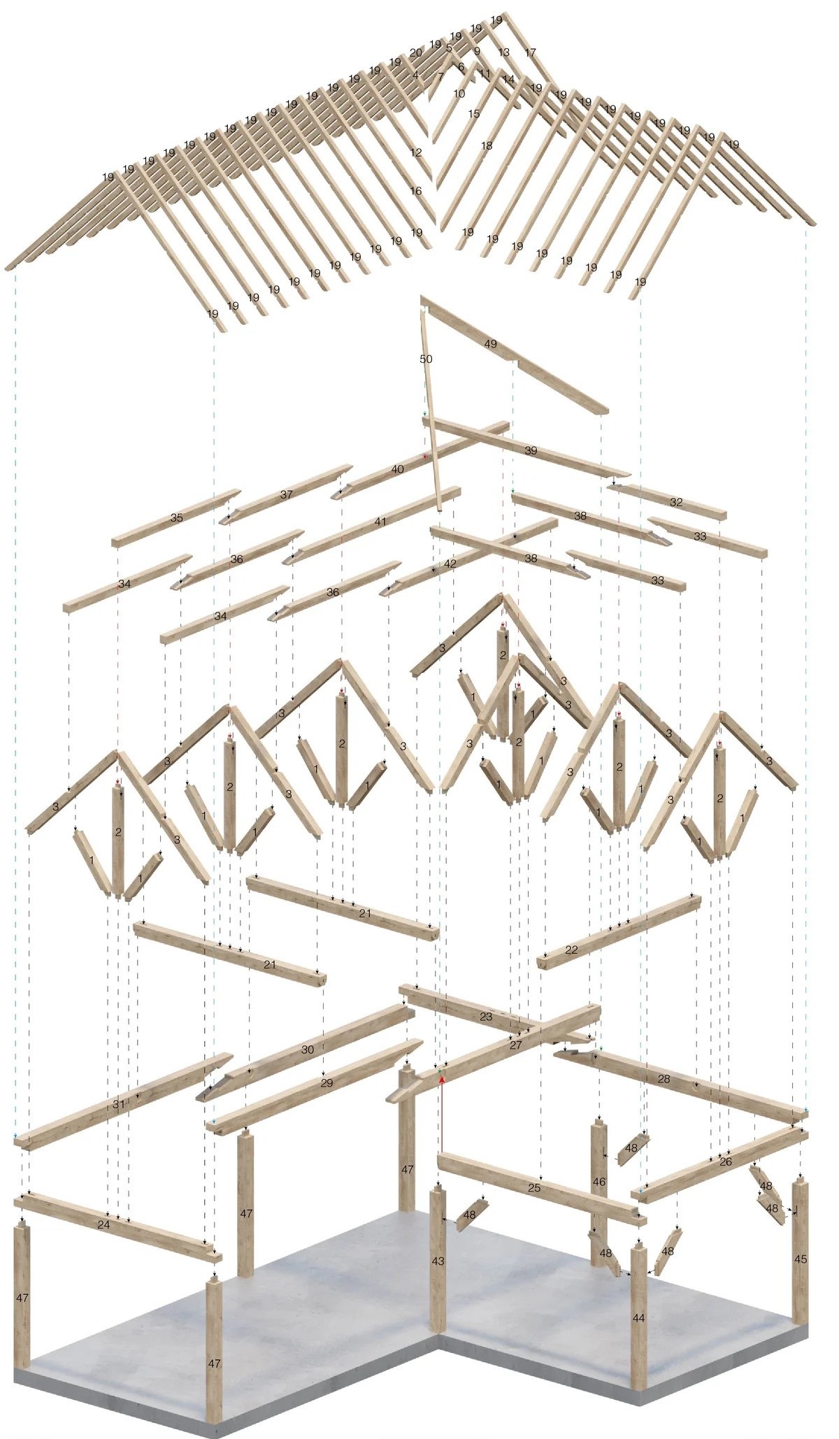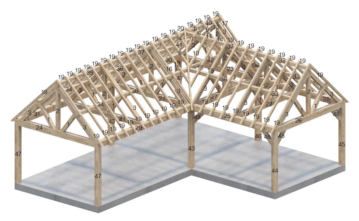 Deze L-vormig houten bijgebouw heeft een afmeting van 6x6m en