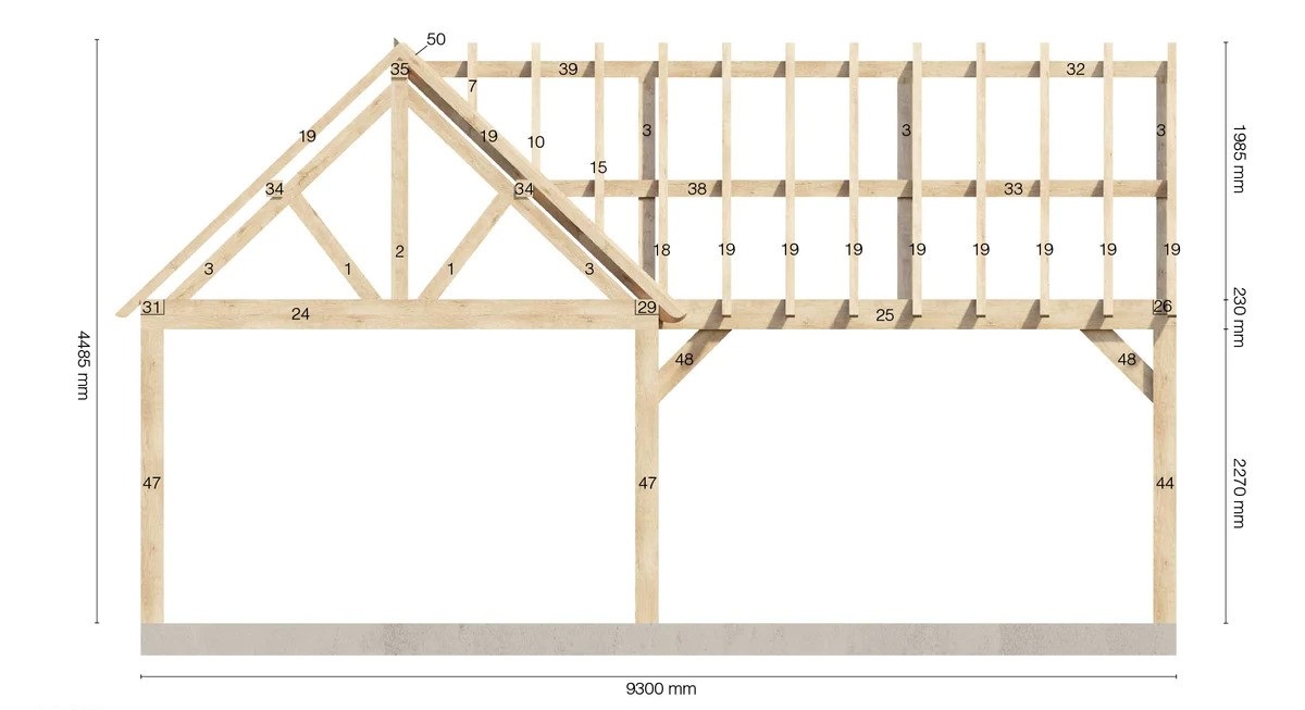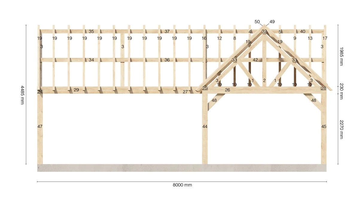9.3x8m. Dit ruime bouwwerk biedt uitgebreide mogelijkheden voor elke gewenste functie. Dankzij de royale afmetingen is het perfect voor een vrijstaande plaatsing, onafhankelijk van uw huis, waarbij u de vrijheid krijgt het volgens uw eigen smaak en behoefte te personaliseren.