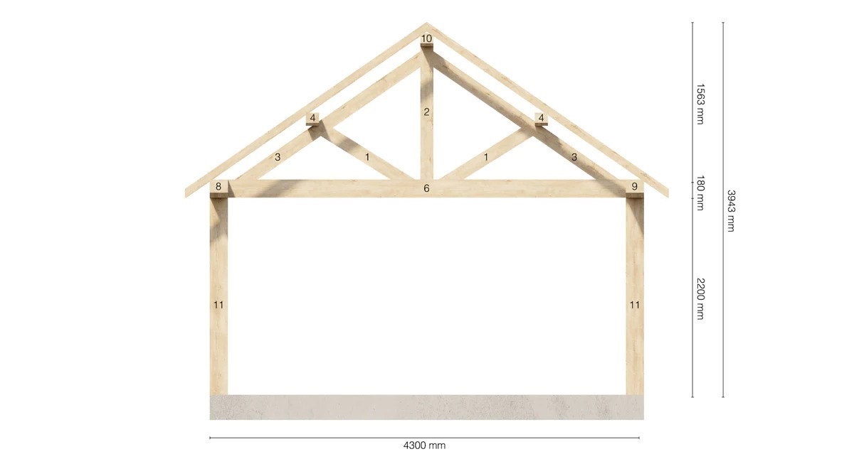Deze compact en veelzijdig zelfbouwpakket in de afmetingen 4.5×4.3m & 5,5x4m is voorzien van een elegant zadeldak. heeft deze houten constructie een landelijke en duurzame uitstraling. Met zijn universele afmetingen is de constructie perfect geschikt voor diverse toepassingen zoals een overkapping, tuinhuis, carport, garage, tuinschuur en houten bijgebouw