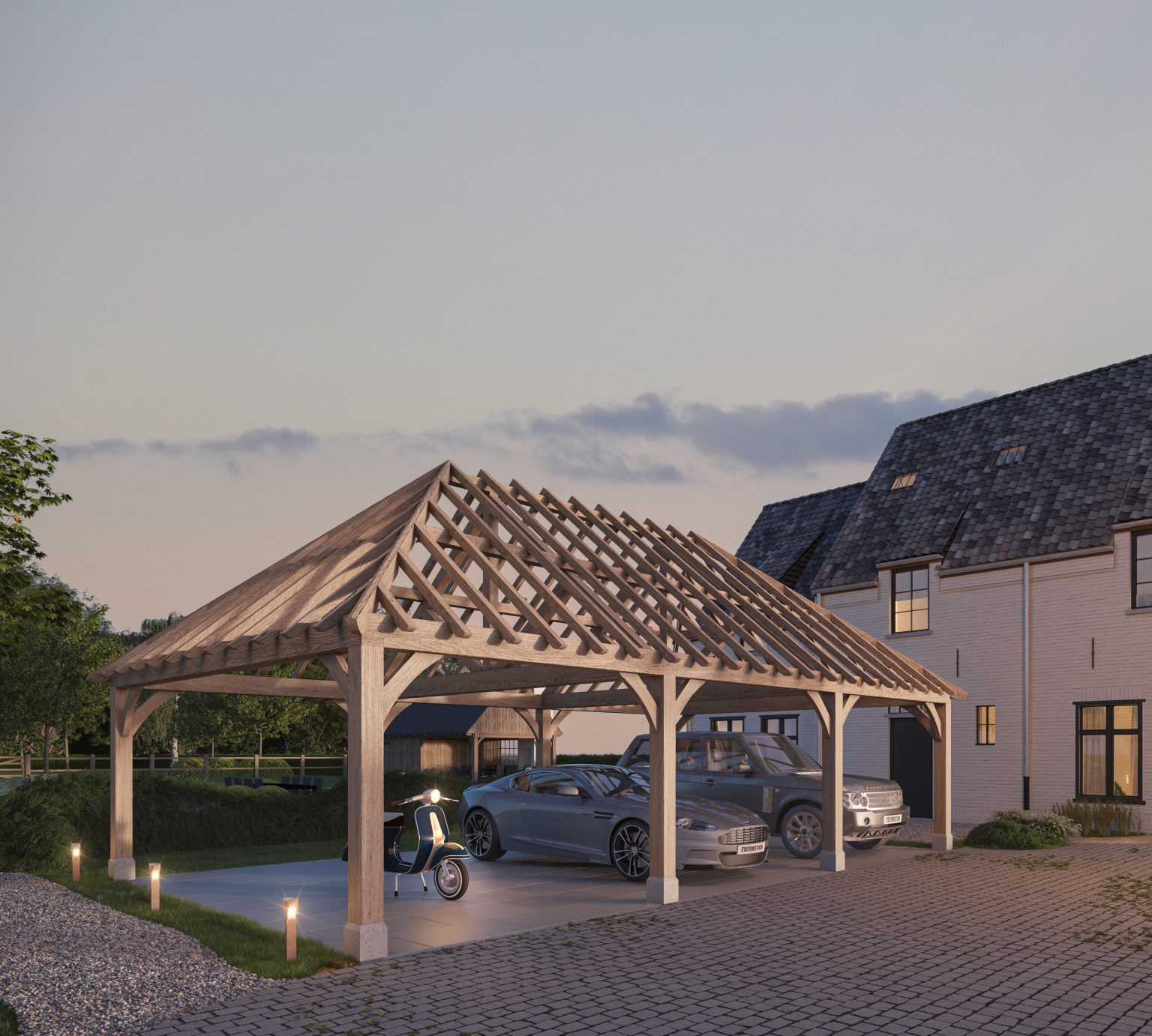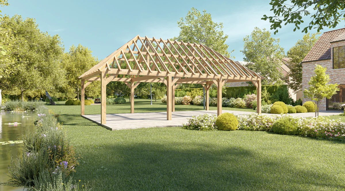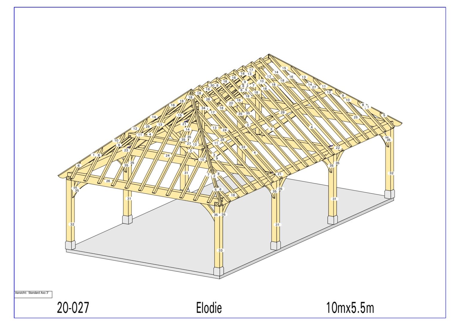 Dit bijgebouw is een veelzijdige en ruime houtconstructie en heeft een afmeting van 5×3,5m en 10×5,5m. Ideaal voor diverse toepassingen, Zo is er ruimte voor 3 auto’s. Kenmerkend voor dit model is het elegante schilddak, dat niet alleen esthetisch aantrekkelijk is, maar ook functioneel in zijn ontwerp. Uitgevoerd in Traditionele Massieve Houtbouw met authentieke houtverbindingen en robuuste oversized balken tot wel van 23×18 cm, heeft deze houten constructie een landelijke en duurzame uitstraling.